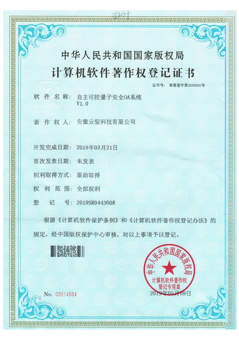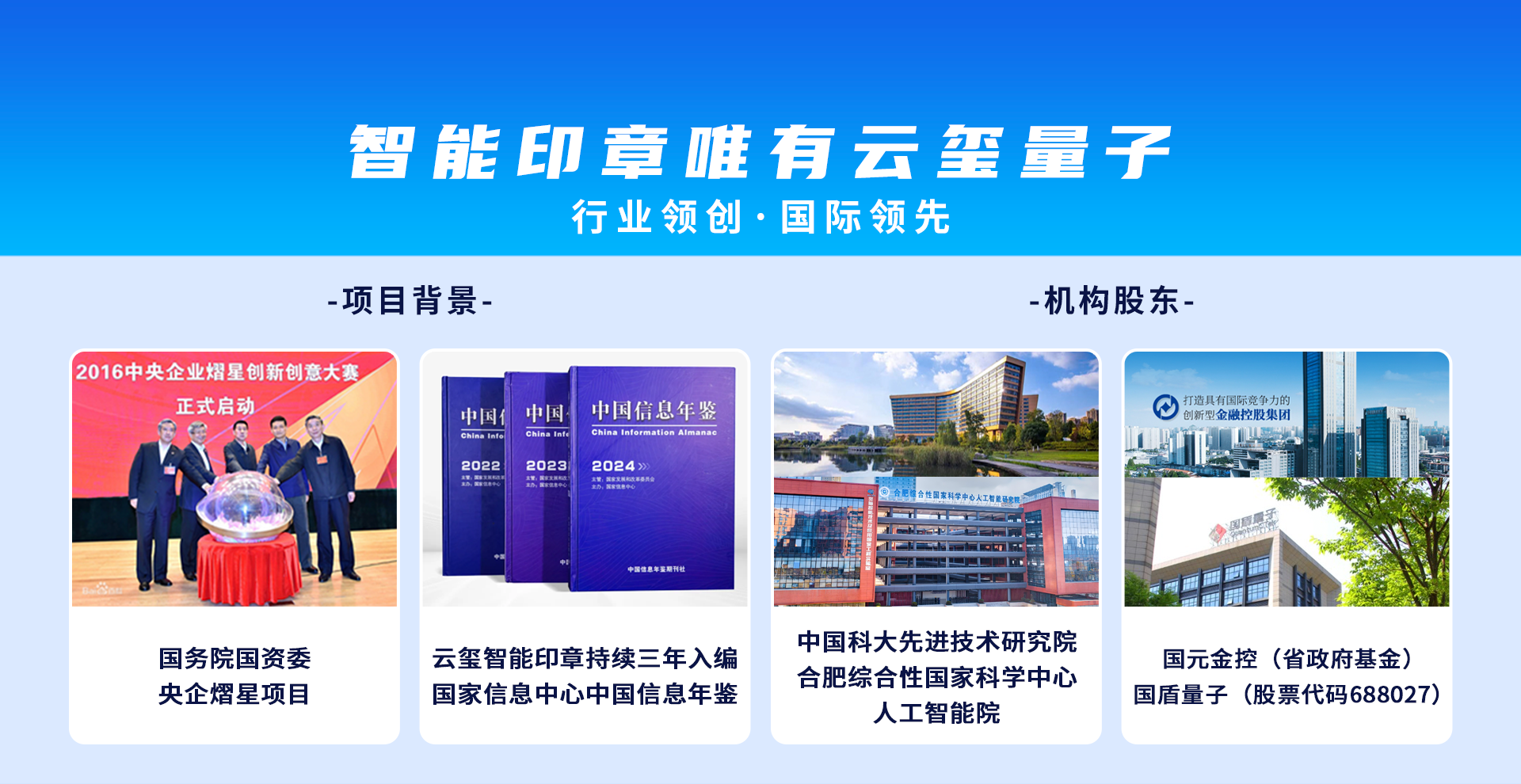 安徽云璽量子科技有限公司是合肥市量子信息產(chǎn)業(yè)重點(diǎn)企業(yè),國(guó)家信創(chuàng)工委會(huì)成員企業(yè),中國(guó)信創(chuàng)500強(qiáng)企業(yè)。主營(yíng)業(yè)務(wù)包括量子安全智能印簽、量子安全智能辦公、量子安全云服務(wù),為政企客戶提供量子安全整體解決方案。